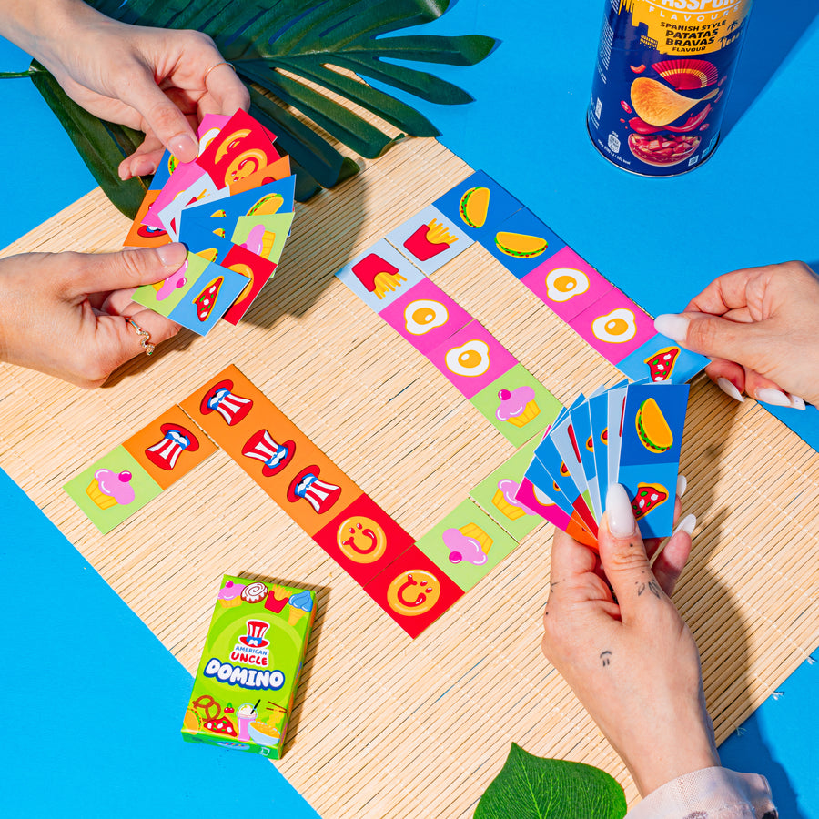 Bereid je voor op plezier met een tijdloze klassieker: de set "American Uncle Domino Game" bevat 28 stenen met het thema snack, perfect om een heerlijke slang te maken. Plaats de stenen door de uiteinden met hetzelfde snack aan elkaar te koppelen en probeer al je stenen op te maken voordat iedereen dat doet om de titel van kampioen mee naar huis te nemen!