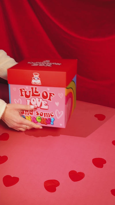 De Explosion Box is een unieke verrassingsdoos: je verwijdert het deksel en ziet hoe de vleugels als bij magie openen, waarbij alle 15 heerlijke snack binnenin worden onthuld - zoet en hartig. Ja, het is een verrassende en onweerstaanbare ervaring, perfect om indruk te maken en te veroveren op Valentijnsdag!