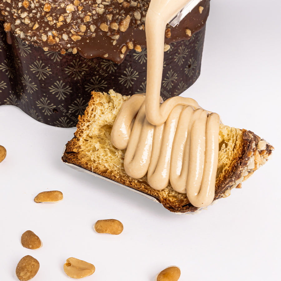 CHOCO PEANUT BUTTER CRÈME: PINDA'S (Argentinië) 80%, Sucrose, Kokosolie, Zout. suiker, plantaardige olie (zonnebloem, palm), magere melkpoeder MELK, melkwei in poeder MELK, LACTOSE, emulgator lecithine (SOJA), aroma's. Het product kan NOTEN en derivaten bevatten.