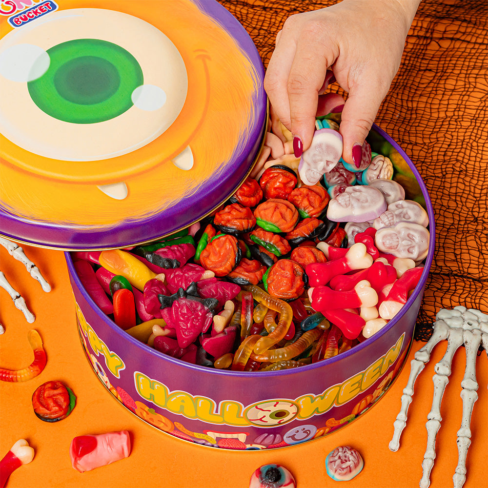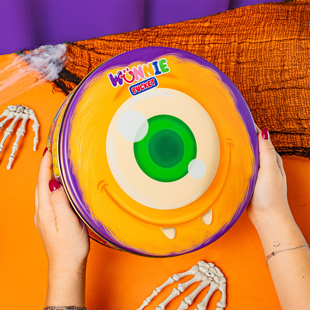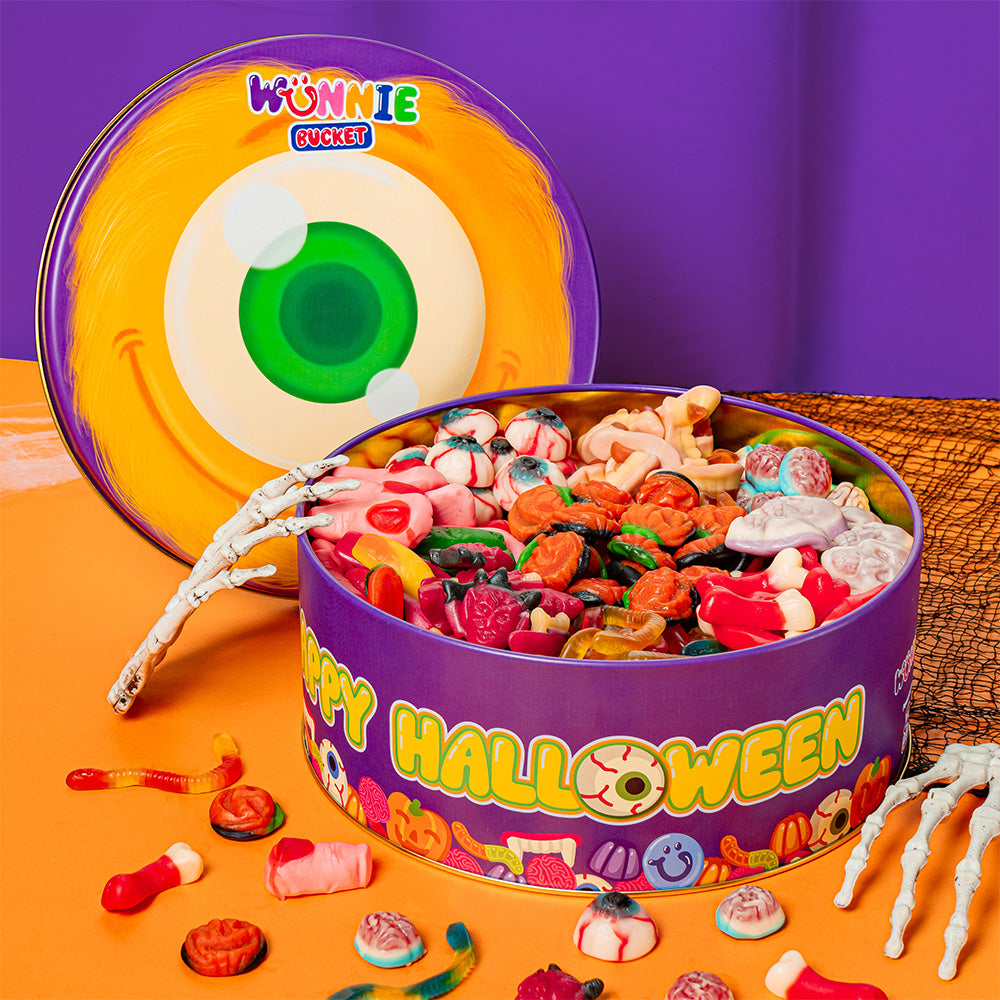 De Wunnie bucket is een personaliseerbaar blik met 2 soorten gomballen: je kunt kiezen uit maximaal 10 verschillende smaken uit meer dan 30 beschikbare!